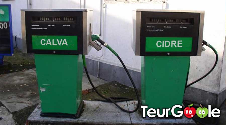 Calva & Cidre : l’ancienne pompe a essence est désormais devenue l’attraction incontournable. 13€ le litre de Calva, le prix est évidemment plus cher qu’un litre de gasoil ou de sans plomb… mais pourtant l’engouement est bien présent.